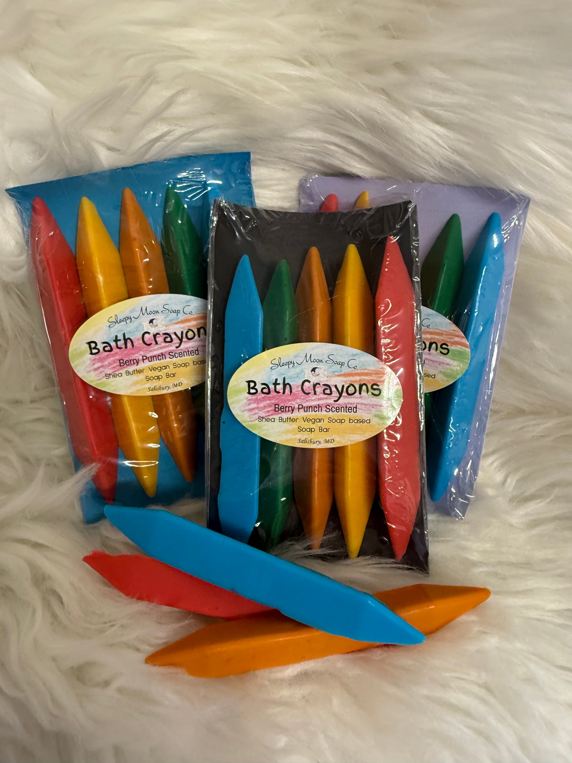 These bars can be used to draw on the tub ( though the color is subtle )and easily wipes off. Made with a vegan shea butter soap base that leaves your skin soft when you use it as a bath bar.