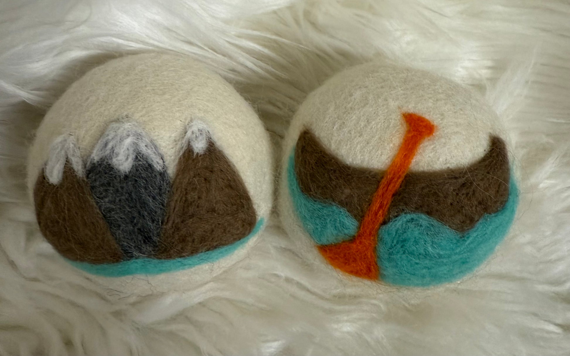 Felted Wool Laundry Dryer Balls: Mountains and Canoes