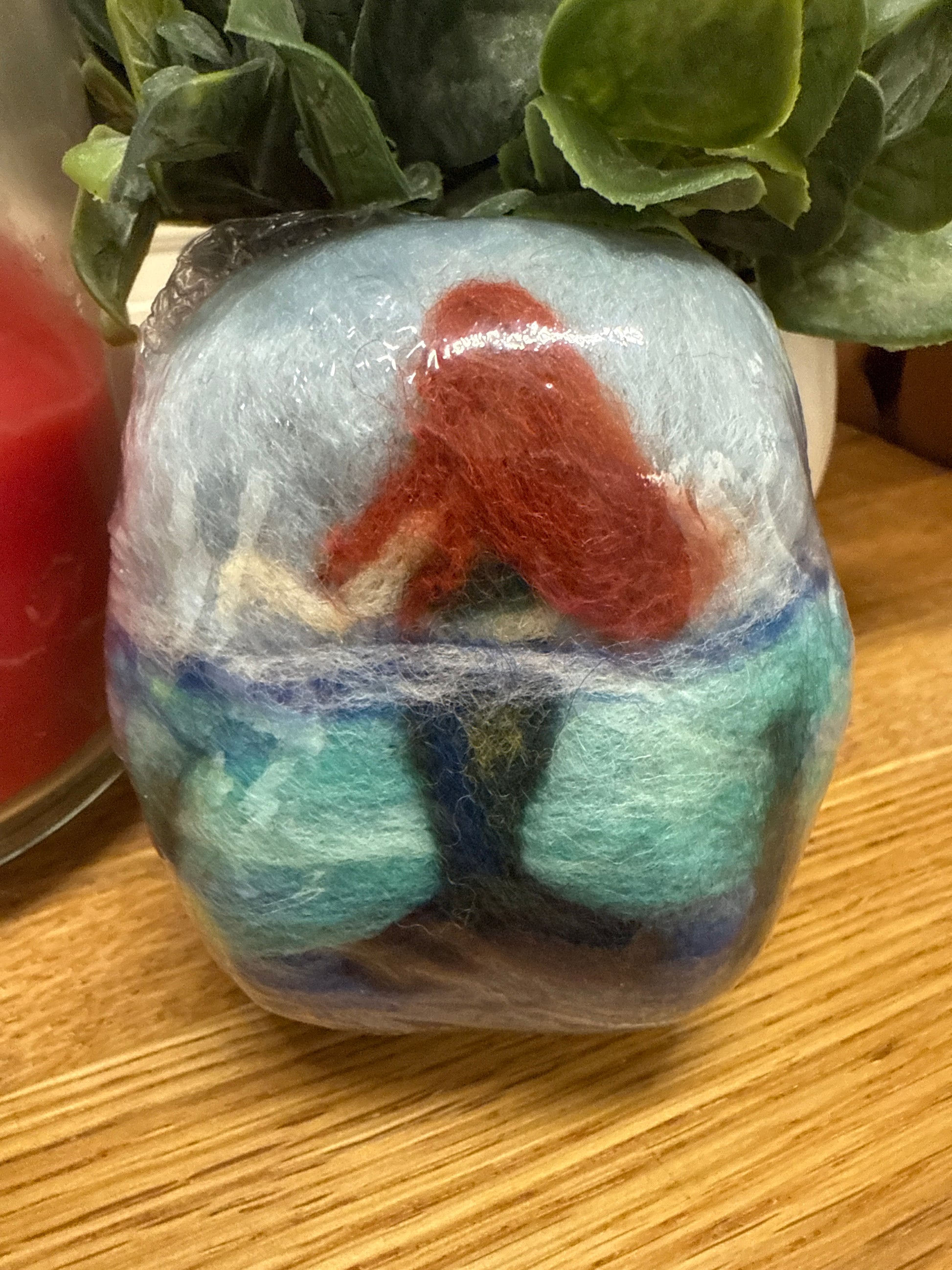 All natural vegan soap bar wrapped in wool and hand needle felted to replace a sponge and provide a gentle exfoliation