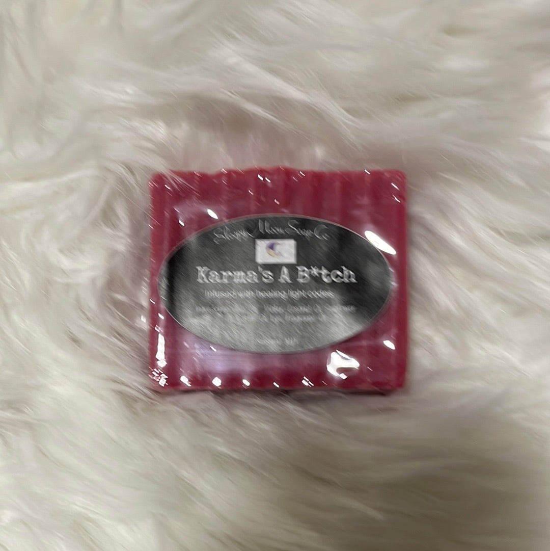 Homemade in small batches this blend of karma and romance in a sultry fragrance of enchanting musk, mulled fruit, citrus, spiceberry, patchouli, sandlewood and myrrh