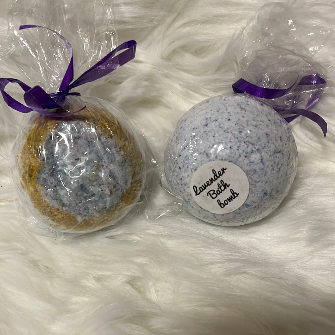 All natural bath bomb scented with lavender with moisturizing coconut oil
