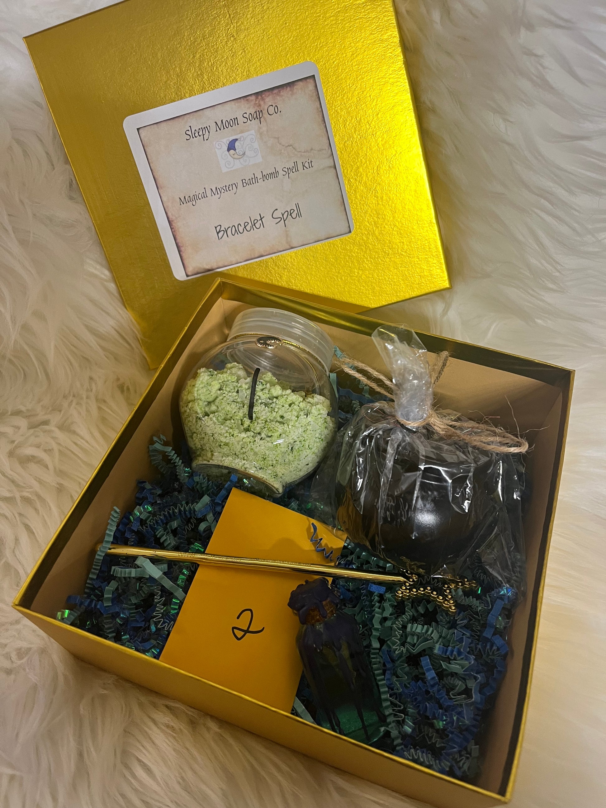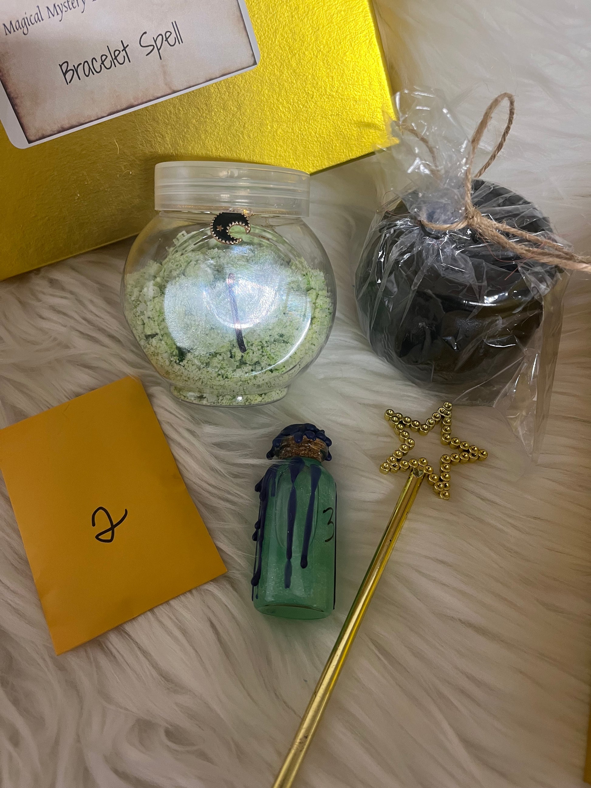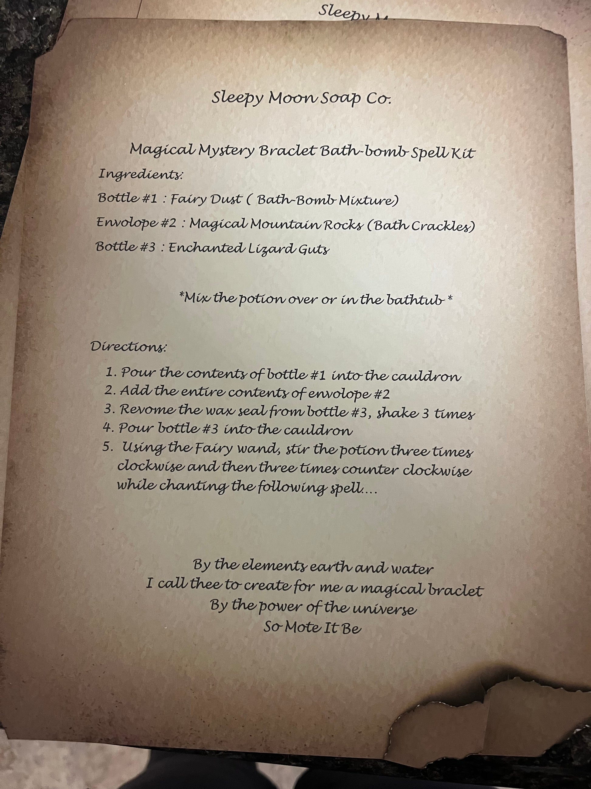 Magically created your own charm bracelet with our spell bath bomb kit!! Each kit contains two charm bracelets. Bath bomb is scented with a blend called “ dream catcher “.