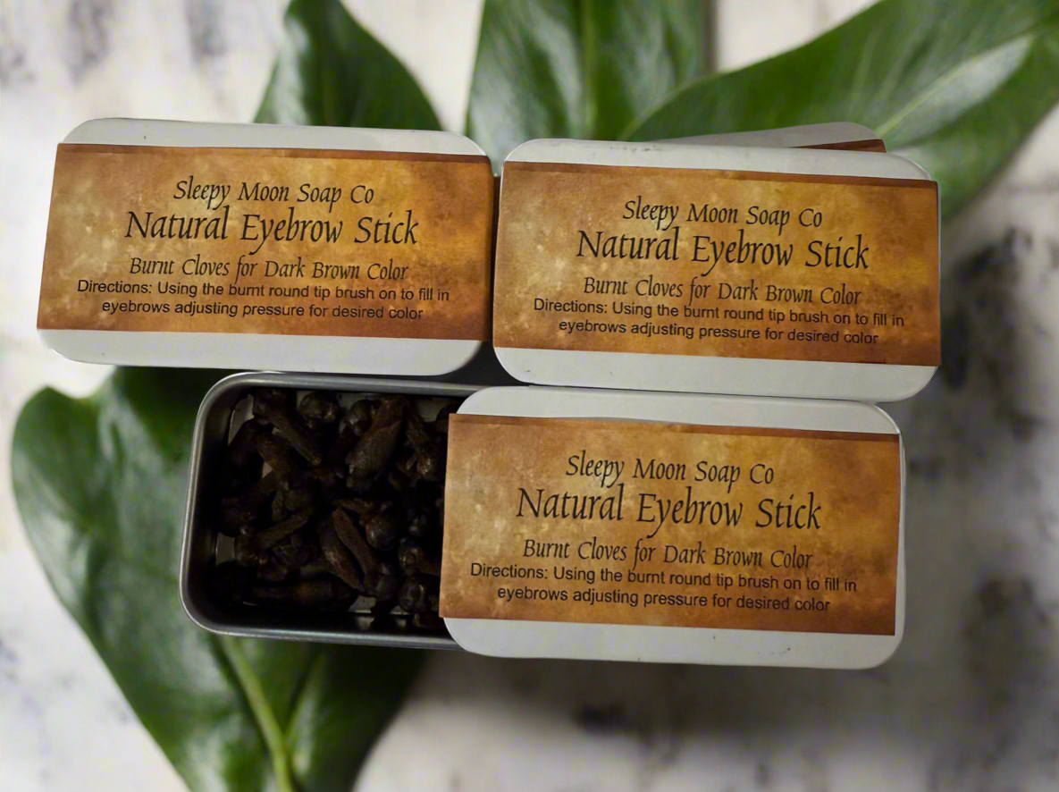 An all natural bark drown eyebrow color using burnt cloves! By adjusting your applying pressure you adjust the color. There’s around 40 cloves depending on size ( 0.1oz per tin)